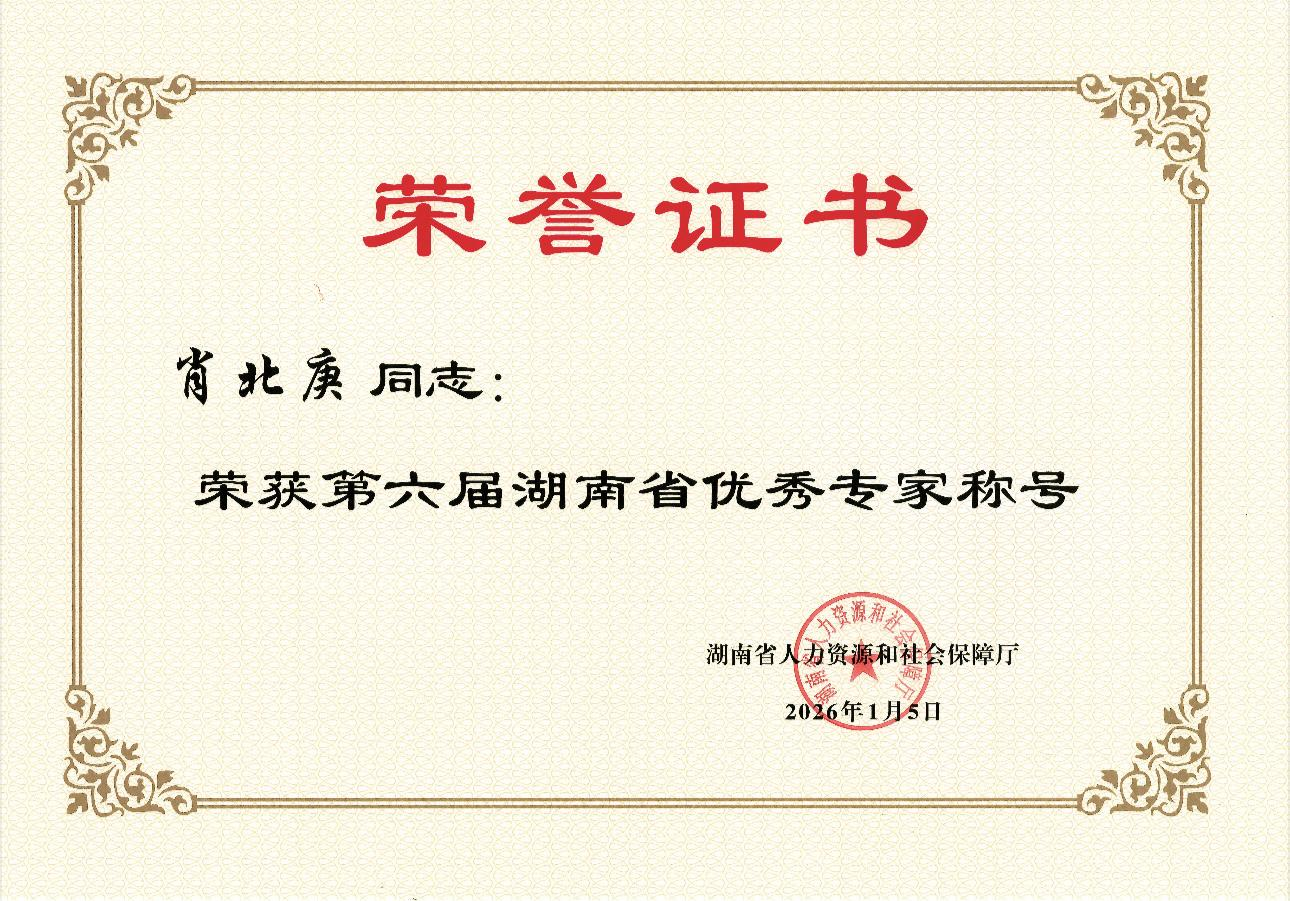 (通讯员 张宁莎 韩蕴恬)近日,全省人力资源和社会保障工作会议在长沙召开,会上公布了《关于表彰第六届湖南省优秀专家、第六届湖南省技能大师、第十三届湖南省技术能手和第一届湖南省乡村车间优秀企业家的决定》并进行集中表彰,王俊寿副省长等领导为获奖代表颁发了荣誉证书。全国人大代表、beats365二级教授、博士生导师肖北庚获第六届湖南省优秀专家称号。肖北庚教授是此次我省人文社科领域唯一获表彰的优秀专家,同时也是公司此次唯一获评的人才。此次殊荣,是对其四十余年深耕不辍、德业兼修的权威认可,更是对他以法治初心赋能人才培养、以学术担当服务社会发展的高度肯定。