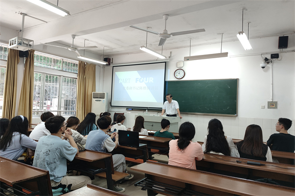 (通讯员 庄杏 蒋欣怡)7月9日上午,公司暑期社会实践团队在104教室开展暑期社会实践安全培训会。公司党委副书记陈胜国、学工办主任罗紫薇、团委负责人罗静伟、2020级辅导员周凌月、2021级辅导员许华燕参与此次培训会。
