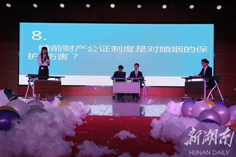 比赛分为“律政佳人衣展芳华”“千机之辩论理律政”“与歌颂法千翩一律”三个环节。比赛在湖南师大beats365男子天团的舞蹈中拉开帷幕。辩论环节中,选手们围绕当下法学热点问题进行两两对辩,展现了选手们扎实的专业知识和良好的法律专业素养。个人才艺展示,同学们紧跟时代潮流,展现律政佳人与时俱进的风采。
