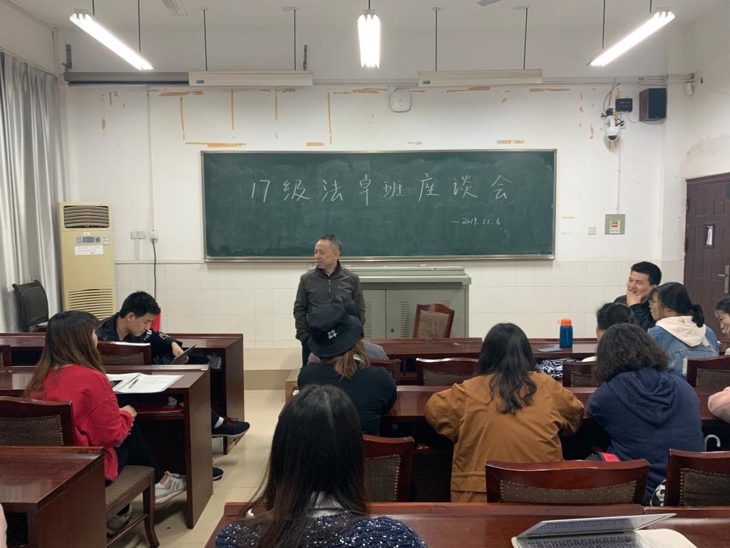 (通讯员 余珍)11月6日上午,公司2017级法学卓越班班主任肖北庚教授与2017级法学卓越班全体员工在公司406教室召开班级座谈会,卓越班辅导员钟厚基主持座谈。