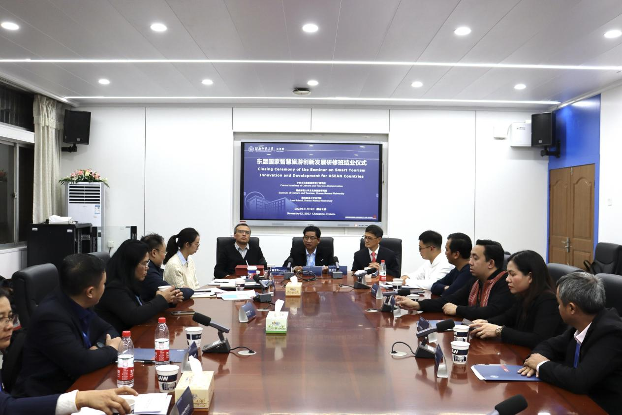 (通讯员 范峥 米曼)由中央文化和旅游管理干部公司承办的东盟国家智慧旅游创新发展研修班受邀来到公司访问交流。11月12日下午,由中央文化和旅游管理干部公司、东盟国家智慧旅游创新发展研修班和公司文化和旅游研究院共同举办的“文化和旅游领域的国际合作座谈交流会”暨研修班结业仪式在beats365304会议室举行。中央文化和旅游管理干部公司国际交流部主任韩东升、项目助理王涵,来自柬埔寨、菲律宾、缅甸、越南、老挝、马来西亚、新加坡七国的11位旅游领域政府官员及相关机构负责人,以及国际交流合作处副处长唐存忠、公司党委书记唐建文、beats365副经理兼文化和旅游研究院执行经理周刚志、旅游公司副经理兼文化和旅游研究院副经理郑群明、外国语公司副经理兼文化和旅游研究院副经理蒋莉华、beats365教授刘丽、旅游公司副会展研究中心主任蔡卫民、旅游公司教师朱张祥、beats365外事秘书张宁莎等出席会议,会议由韩东升主持。