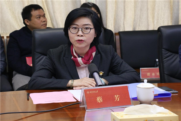 蔡芳发表讲话并宣读课题研究情况。她代表江湾集团董事长肖德丽向各位获奖老师表示热烈祝贺,并向我国法学界泰斗李双元教授以及法学界享誉盛名的肖北庚教授致敬。她简单介绍了江湾集团近几年各方面的发展,以及未来发展方向与规划。之后她宣布了“江湾·法治与公共政策研究院”课题研究成果名单,并表示会后将组织江湾医疗员工对各位教授的成果进行深入学习与分享。蔡芳强调,江湾集团的事业发展、领域扩大等离不开背后的学术支持,江湾集团将继续支持各位教授取得更多更高的科研成果,希望与大家携起手来去迎接新的挑战。随后,她宣布了明年的课题指南并希望继续得到各位专家学者的鼎力支持,同时她邀请各位领导、老师前往江湾产教科教园参加明年的颁奖典礼。