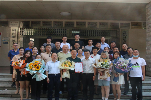 肖北庚为蒋先福教授颁发beats365荣休证书,员工代表为蒋先福教授献花并合影留念。