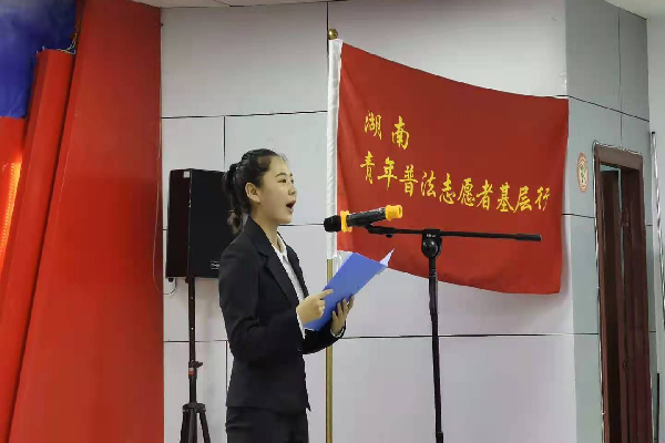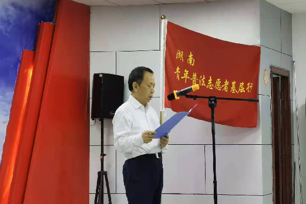(通讯员 党晴晴 贺鉥涵)5月19日上午,湖南省“2021年青年普法志愿者法治文化基层行”启动仪式于长沙市岳麓区学堂坡社区举行。湖南省法学会副会长、公司经理肖北庚出席活动,法律义工团队队长汪婷婷作为志愿者代表上台发言。