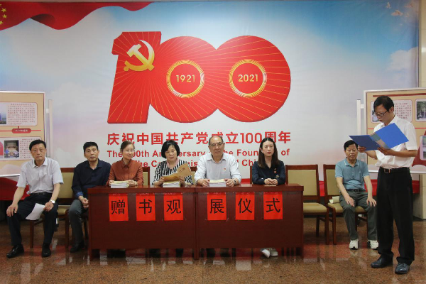 陈胜国代表公司致辞。他指出,在喜迎建党百年华诞、扎实推进党史学习教育之际,公司党委、关工委隆重举行“赠书观展”仪式,这是“赓续百年精神,砥砺再建新功”员工党史学习教育之一,也是公司关心下一代工作的重要抓手;组织员工团队,为汪老董事长整理历史图片和写作文稿,把编辑成册的《心路》选读本赠送青年学子,举办红色旅程图片展,用一名老党员、老法律人的亲身经历和初心情怀激励员工、教育员工;站在“两个一百年”的历史交汇点,我们要教育引领员工始终坚定理想信念,不忘初心跟党走、砥砺前行但使命,为国家法治建设、实现中华民族伟大复兴的中国梦贡献青春力量!