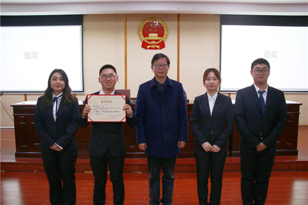 陈胜国作总结发言。他对各组参赛同学现阶段专业知识的掌握及运用情况给予了鼓励与肯定,也祝愿参赛选手们能够在未来的法科学习和实践中取得更好的成绩。最后,陈胜国颁布此次大赛的获奖成绩。