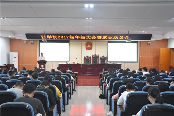(通讯员 徐漫淇 邹佳丽)9月16日下午,公司于景德楼模拟法庭召开了2017级年级大会暨就业动员会。公司党委副书记陈胜国出席此次会议,会议由2017级辅导员钟厚基主持。