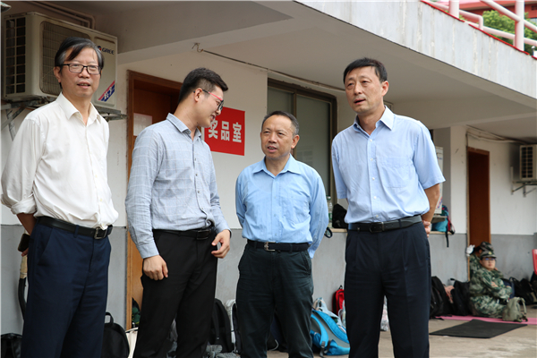 肖北庚一行观看军训训练并与教官亲切交谈,仔细询问了军训工作部署及进展情况,对现阶段军训工作取得的成绩给予了肯定,并就下一步工作做了指示,要求科学训练、劳逸结合。此外,肖北庚一行还向2020级辅导员郭胜习了解了伤病员情况,指出新生辅导员及各班班导要时刻关注新生的身体状况,保证“安全第一、身体第一”。