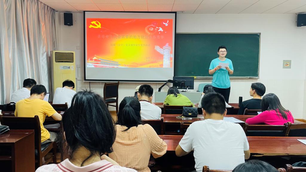 随后,毕业生党员代表万嘉宾向全体支部党员作表态发言。他表示作为2022届毕业生既要仰望星空,更要脚踏实地,在服务乡村振兴、建设美丽中国、追求幸福人生中担当奋斗、无私奉献,在祖国和人民需要的地方建功立业,成就自我,实现自我。