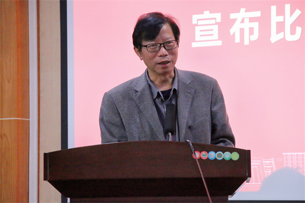 陈胜国发表讲话,他回顾了此次模拟法庭比赛的历程,向此次比赛的评委老师、指导老师以及组织比赛的法协员工干部表示感谢,并强调了模拟法庭这一比赛的重要地位与意义,即为员工提供了一个模拟法律实践的机会,让员工走出理论知识圈,在模拟的诉讼环境中增强实际运用能力。最后,陈胜国宣布决赛评审结果。