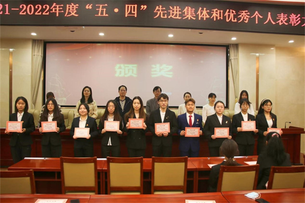 (通讯员 付晓洁 华昭琪 马书晨)5月19日下午,公司2021—2022年度“五•四”团内表彰大会在院205会议室举行。正处级专职组织员陈胜国、副经理欧福永、2019级辅导员罗紫薇、2018级辅导员罗静伟、2020级辅导员周凌月、2021级辅导员许华燕、法硕办黄霁昢出席此次大会。大会由团委办公室陈召峰主持。