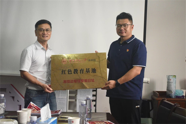 随后,在双方人员的共同见证下,唐建文和仲铭共同为红色教育基地挂牌。挂牌仪式结束后,参会人员前往“红军树”、“救龙井”等红色景点和三合界村正在如火如荼推进建设的新行政服务中心进行了参观考察。