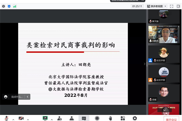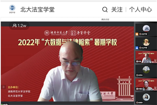 (通讯员 解靖 黄洁)秉承着课堂无边界,教学无边界的公益理念,8月8日上午,由公司与北大法宝学堂联合主办,中国大学MOOC《大数据与法律检索》课程团队承办的2022年“大数据与法律检索”暑期公司开幕式暨法律检索与类案应用主题论坛线上举行,来自海内外百余所高校的1.2万多人通过北大法宝学堂平台观看了本次直播。北京大学法律人工智能实验室副主任、北大法宝创始人、总经理赵晓海,公司经理、教授肖北庚,授课团队团队成员,资深学者,行业实务专家,全体正式学员以及其他受邀嘉宾参与本次论坛。公司副经理、教授欧福永主持本次开幕式。