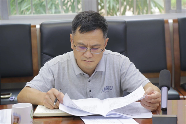 陈胜国做主题中心发言,他围绕习近平总书记在省部级主要领导颁布专题研讨班上的重要讲话精神从三个方面展开阐述。首先是介绍了习近平总书记此次重要讲话精神,即在全面建设社会主义现代化国家、向第二个百年奋斗目标进军的新征程上,全党必须高举中国特色社会主义伟大旗帜,坚持以马克思主义中国化时代化最新成果为指导,坚定中国特色社会主义道路自信、理论自信、制度自信、文化自信,坚定不移推进中华民族伟大复兴历史进程。我们要牢牢把握新时代新征程党的中心任务,提出新的思路、新的战略、新的举措,继续统筹推进“五位一体”总体布局、协调推进“四个全面”战略布局,踔厉奋发、勇毅前行、团结奋斗,奋力谱写全面建设社会主义现代化国家崭新篇章。接着,他指出总书记阐明的重大理论实践创新:一是推动了我党精神内涵的丰富;二是国际国内大势新的战略机遇新的挑战问题;三是深刻认识“极不寻常、极不平凡”的5年;四是由“八个明确”到“十个明确”。最后,他强调了习近平总书记此次讲话的重大意义:一是统一思想,总书记科学分析了当前国际国内形势,深刻阐述了过去5年工作和新时代10年的伟大变革,深刻阐释了新时代坚持和发展中国特色社会主义的重大理论和实践问题,深刻阐明了未来一个时期党和国家事业发展 的大政方针和行动纲领。二是坚定信心,推进各项工作的扎实做好。他号召全体党委委员作为高校教育工作者要认真抓好公司团队建设,有效推进党政建设、教学科研、安全建设等各项工作的有序进行。