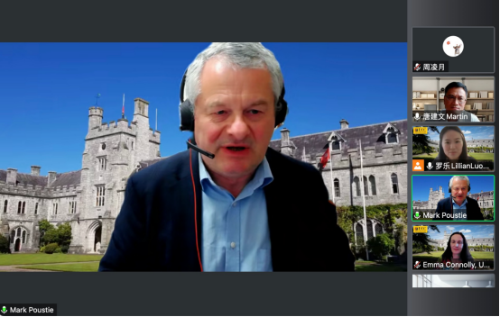 Mark Poustie从公司历史、概况、办学特色、声誉、与中国高校和机构的合作情况和合作模式等方面对爱尔兰科克大学进行了介绍。