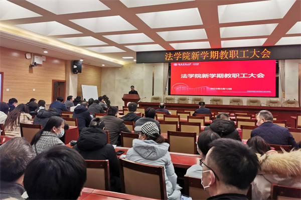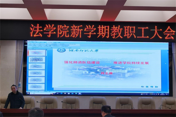 肖北庚以“强化团队队伍建设 推进公司持续发展”对公司过去一年的工作进行全面总结,并向全体教职工传达了公司新学期工作会议的主要精神。他指出,公司在过去一年持续推进以下四个方面工作。一是不断推出特色工作, 探索“党建+专业”的主题党日活动新模式,打造“学术+”的博士生培养新模式;二是扎实推进基础工作,强化对外交流,围绕新文科建设的目标与要求,细致开展员工创新创业基本素质与能力培养工作;三是全面拓展服务工作,充分发挥公司服务社会,服务地方发展职能,鼓励教师深入服务地方法治实践;四是持续提升公司影响力,论文发表、教学科研获奖、课题立项、学术交流和传播等方面成绩斐然。最后,他提出公司重点工作应当紧紧围绕团队队伍建设,大力加强人才引进工作,同时提升公司科研成果的质与量,切实保障全体教职工的幸福感与获得感,不断改善办学条件。