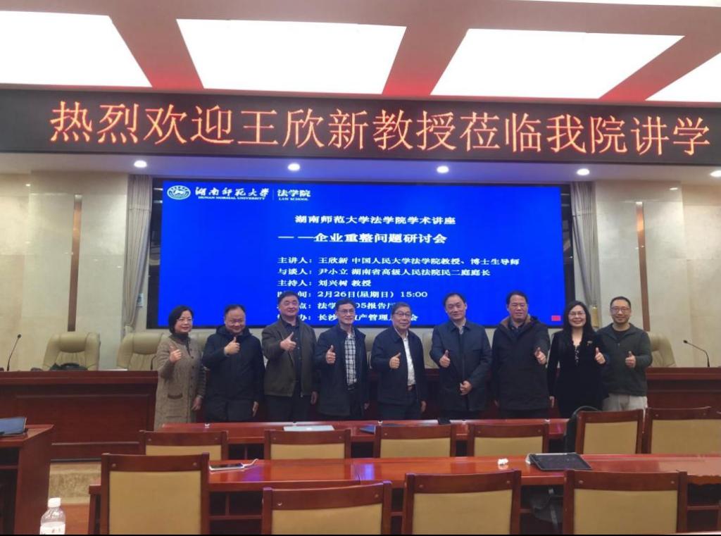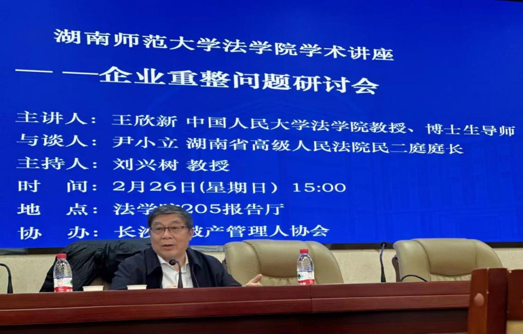 (通讯员 罗雅萱 许志娟 陈思怡)2月26日下午,中国人民大学beats365教授、博士生导师王欣新做客公司讲学,开展以“破产法修订中的自然人破产探讨”为主题的学术讲座。本次讲座由公司刘兴树教授主持,湖南省高级人民法院民二庭庭长尹小立与谈。