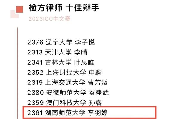 (通讯员 李羽婷 沈廖佳 黄洁)2023年4月16日,公司代表队从全国85支高校代表队中脱颖而出,以总分全国第五的优异成绩荣膺2023年国际刑事法院模拟法庭(下称“ICC中文赛”)一等奖,并包揽最佳政府方律师(第一名)、最佳政府方律师书状奖和最佳检方律师书状奖多项荣誉,赛队队长李羽婷同学获得检方律师十佳辩手,队员胡玥同学获得最佳政府方律师庭辩奖、政府方律师十佳辩手,创下公司代表队参赛以来的最好成绩。