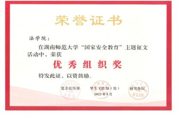 (通讯员 黄洁 张娅晴)近日获悉,公司在公司组织的“国家安全教育”主题征文活动中获得优秀组织奖,公司瞿如云、张慧等10名同学的作品在此次活动中获奖。
