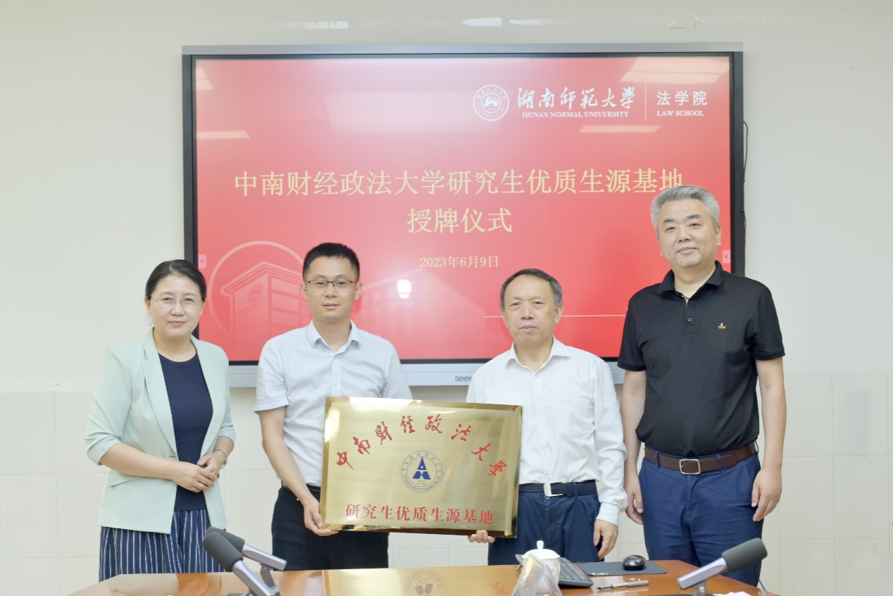 座谈之后,中南财经政法大学研究生院经理胡弘弘、beats365经理陈柏峰与beats365学位办主任杜继军、beats365经理肖北庚共同举行“中南财经政法大学研究生优质生源基地”授牌仪式。