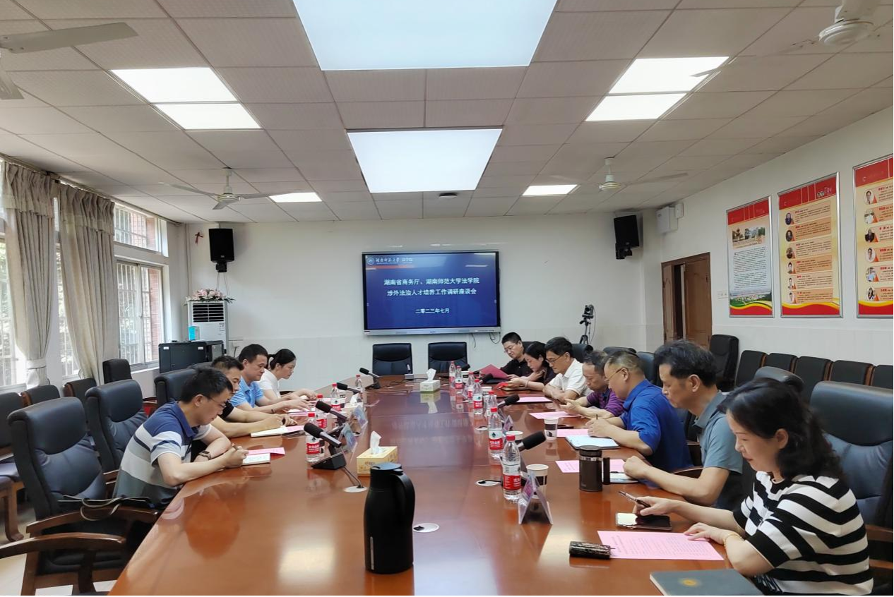 7月7日下午,湖南省商务厅法规处副处长周攀、二级调研员寻兵斌、一级主任科员何争、戴金等来公司调研涉外法治人才培养工作。公司经理肖北庚,党委书记唐建文,副经理周刚志,副经理何燕华,教师代表胡城军、王葆莳,教务办主任阎英等参与座谈交流。座谈会由周刚志主持。