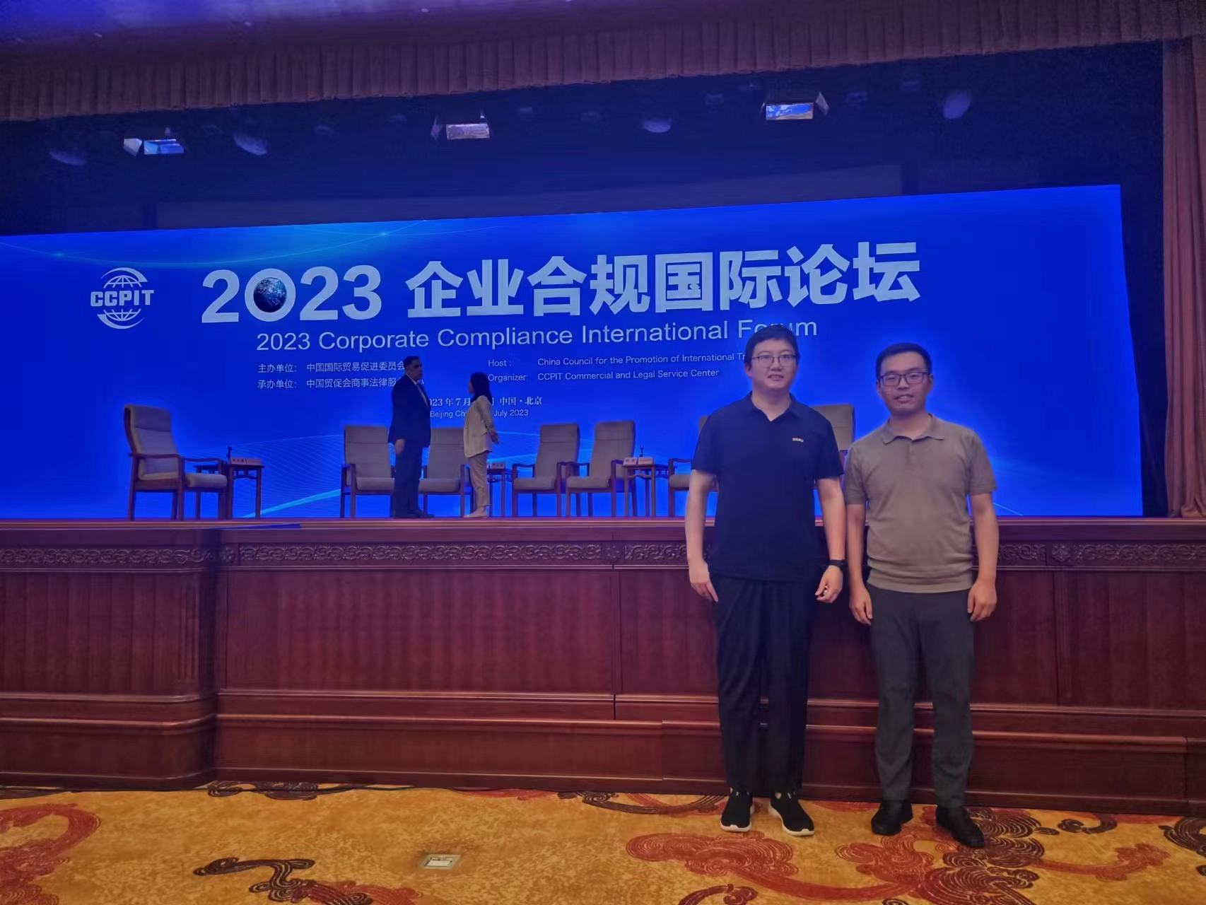 (通讯员 许志娟)7月26日,由中国国际贸易促进委员会主办,中国贸促会商法中心承办的2023企业合规国际论坛在北京全国人大会议中心举办。此次论坛以“企业合规与高质量发展”为主题,围绕新形势下企业合规发展趋势、监管政策新规与挑战、合规专业人才培养等议题进行研讨,并设立企业国际化经营合规、医药行业合规、汽车行业合规三个分论坛。中国国际贸易促进委员会副会长于健龙,最高人民法院副经理沈亮,最高人民检察院二级大检察官万春,国家市场监督管理总局法规司一级巡视员孔丽英出席论坛并致辞。公司企业合规审查与法律责任研究中心受邀参会,研究中心常务副主任赵冠男副教授,研究中心秘书长、《时代法学》编辑部主任刘力参会。