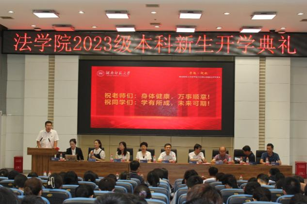 公司各科室负责人、学工办全体老师、2023级全体本科新生参加开学典礼。