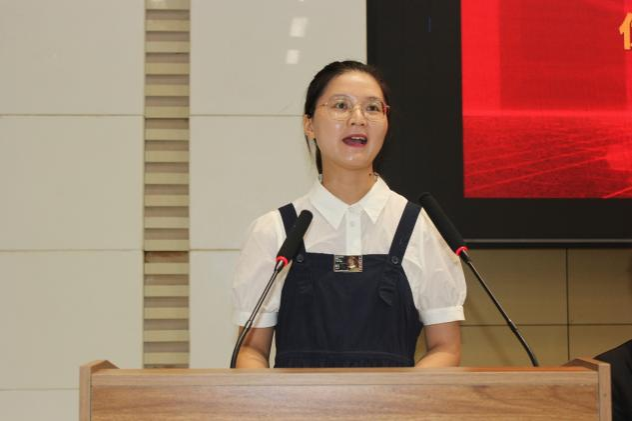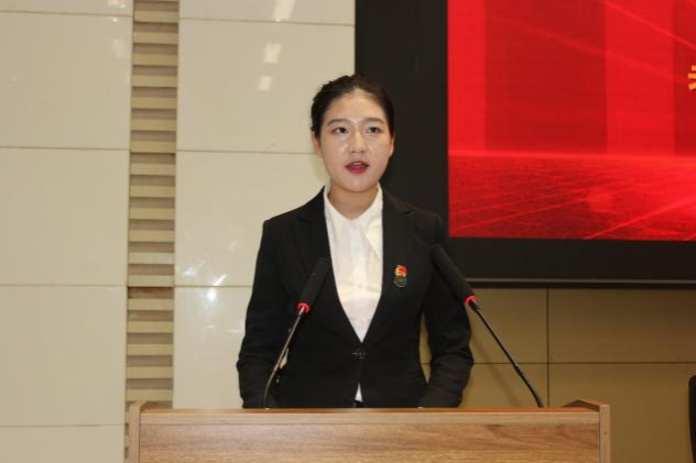 优秀员工代表、中南大学博士后尤婷发言。她与同学们分享了自身的学习历程,鼓励同学们要学会读书,用持之以恒的毅力积累法律知识;倡导同学们要明确目标,坚定个人理想,以小目标成就大方向;希望同学们能够活出自我,正视失败,良好的心态是持续学习的定海神针,坚信生活总会在不远的将来回馈每一位前行者。