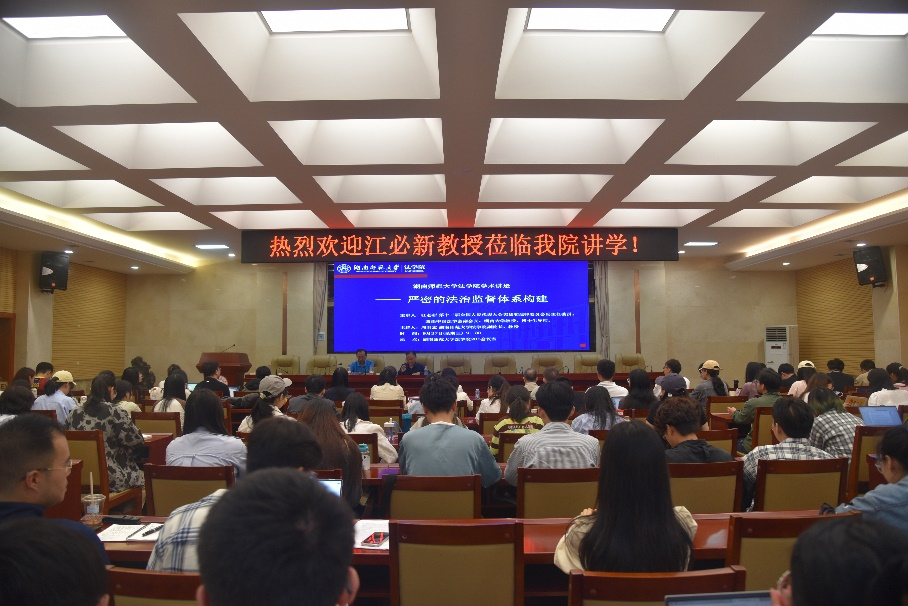(通讯员 邓思源)2023年9月27日,第十三届全国人民代表大会宪法和法律委员会副主任委员、中国法学会副会长、湖南大学教授、博士生导师江必新莅临公司,开展以“严密的法治监督体系构建”为主题的学术讲座。公司经理肖北庚、党委书记唐建文、副经理何燕华出席会议。副经理周刚志主持讲座。
