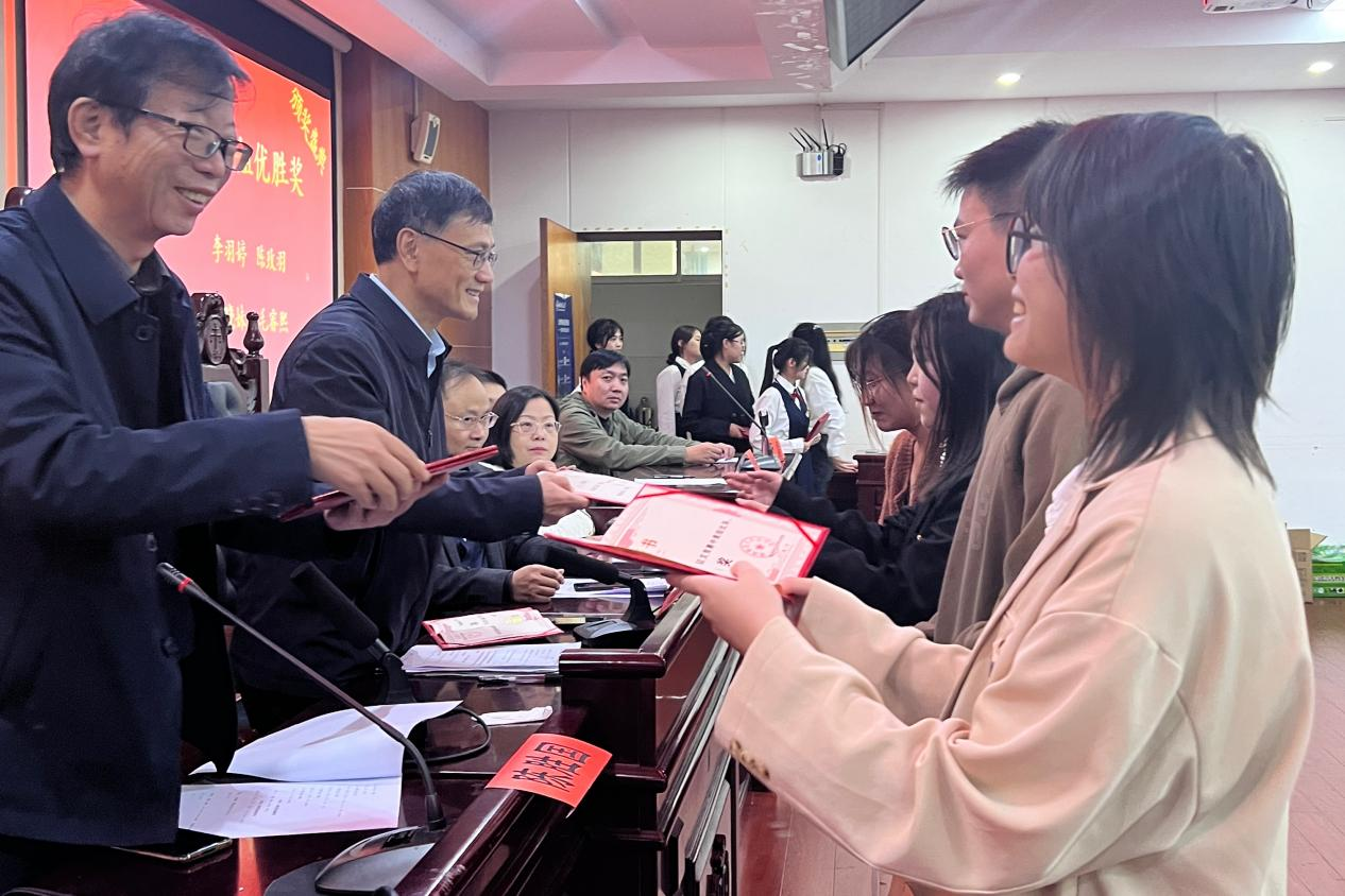 周刚志、何燕华先后宣读了研究生组获奖名单及编辑编务奖,并简要介绍了获奖人员的作品主题。唐建文为获奖的同学颁奖并表示祝贺。