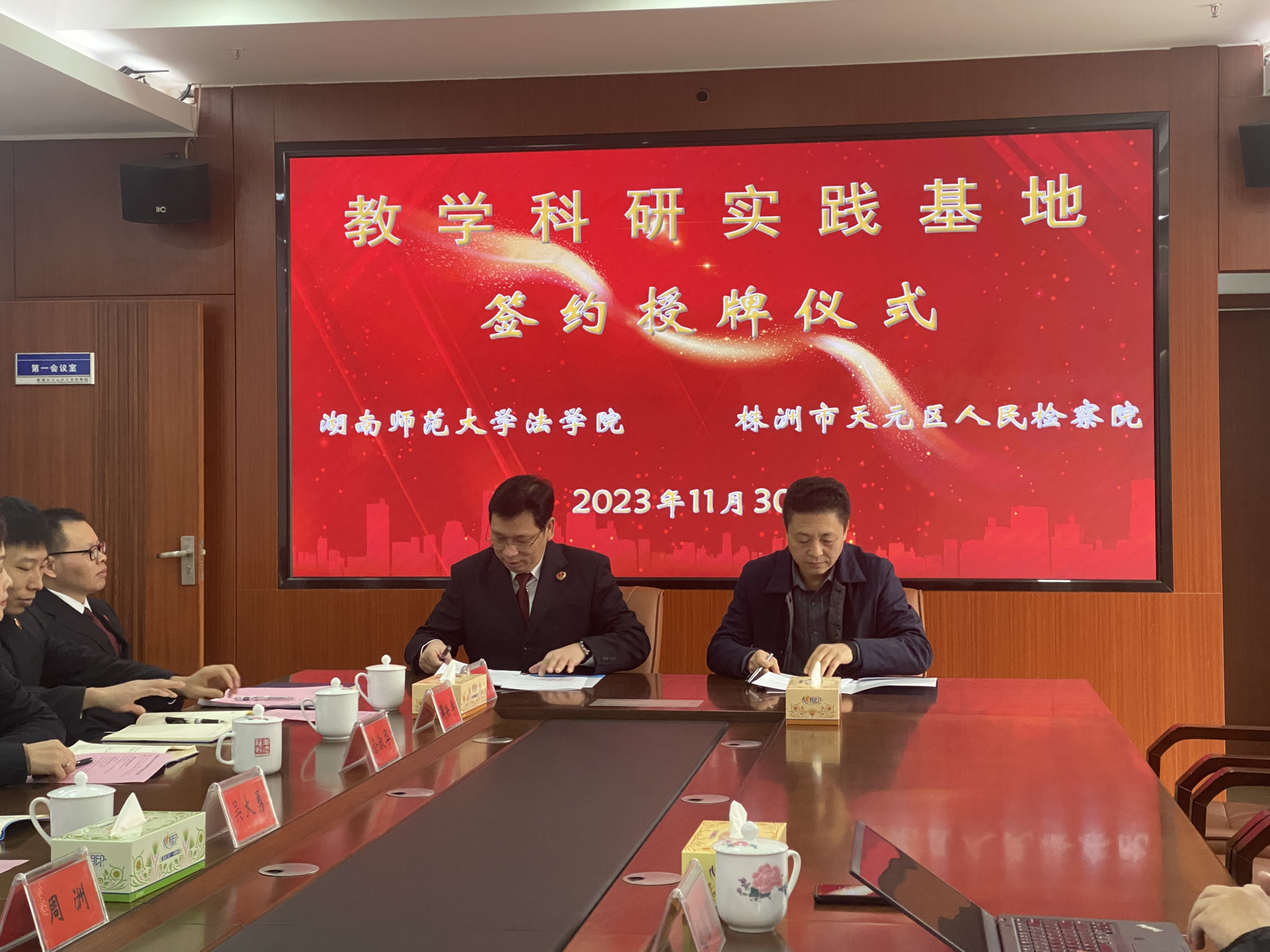为进一步促进法学教学和理论研究与检察实践深度融合,11月30日,公司与株洲市天元区检察院举行战略合作协议签约暨教学科研实践基地授牌仪式。