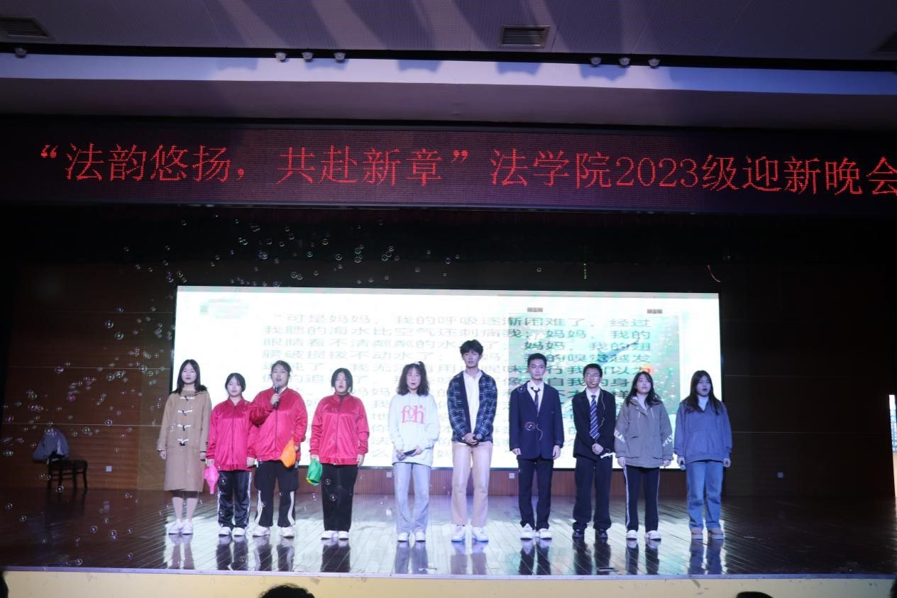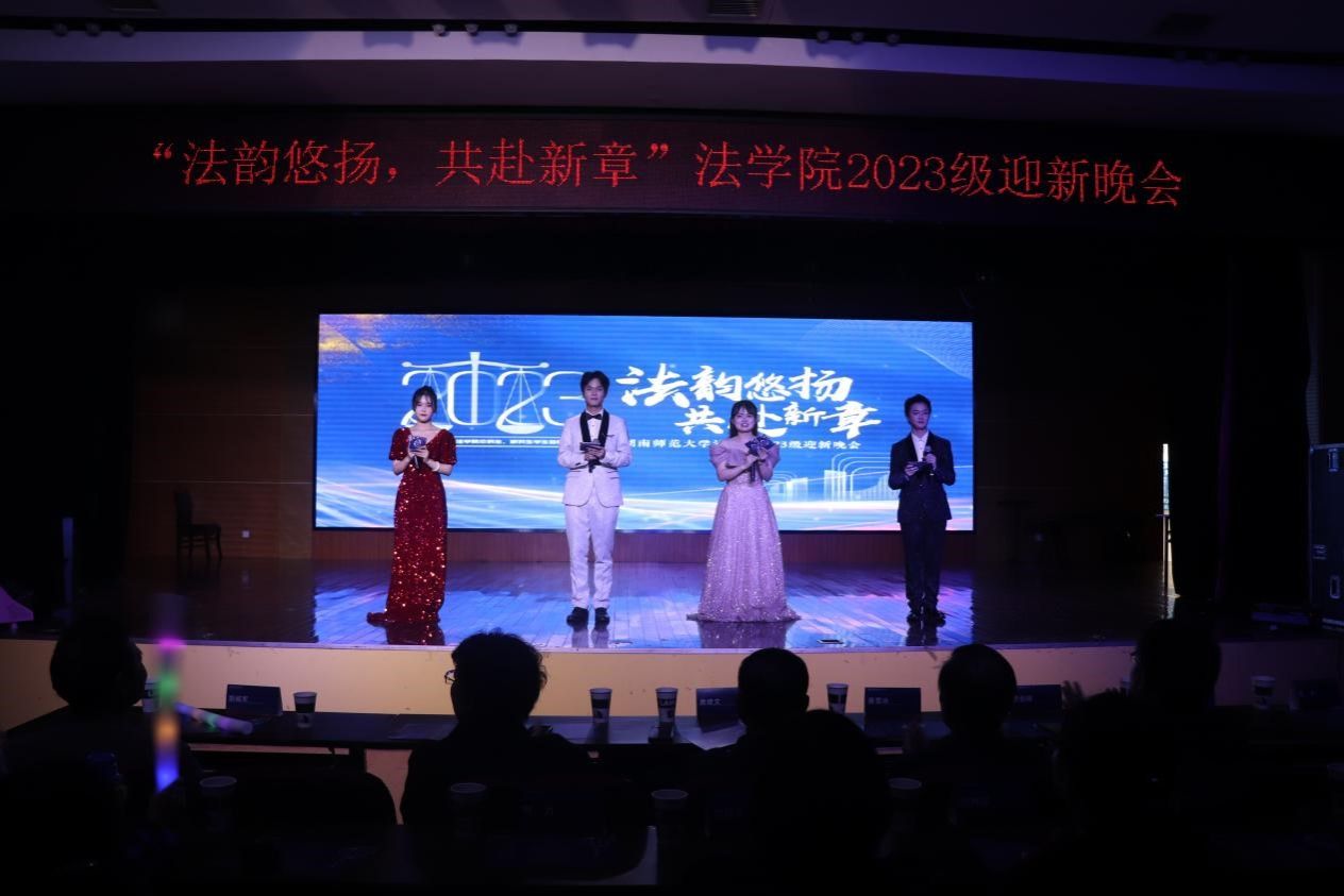 (通讯员 梁延喆 曹珩哲 白欣睿)12月9日晚,公司在江边活动中心举办2023级“法韵悠扬,共赴新章”迎新晚会。公司党委书记唐建文,党委副书记曹俊峰,副经理何燕华,关工委常务副主任蔡雪冰,国际法所教授胡城军,法律文化研究所副教授黄谷秀,政府管理法研究所副教授吕宁,法学研究所刘湘琛,公司党委办主任蒋佩,研究生办主任王丹及学工办全体老师出席此次晚会。晚会由2023级法学二学位员工潘孝琳、2021级本科生熊正韬、2022级本科生张泽予、2023级研究生李薇主持。