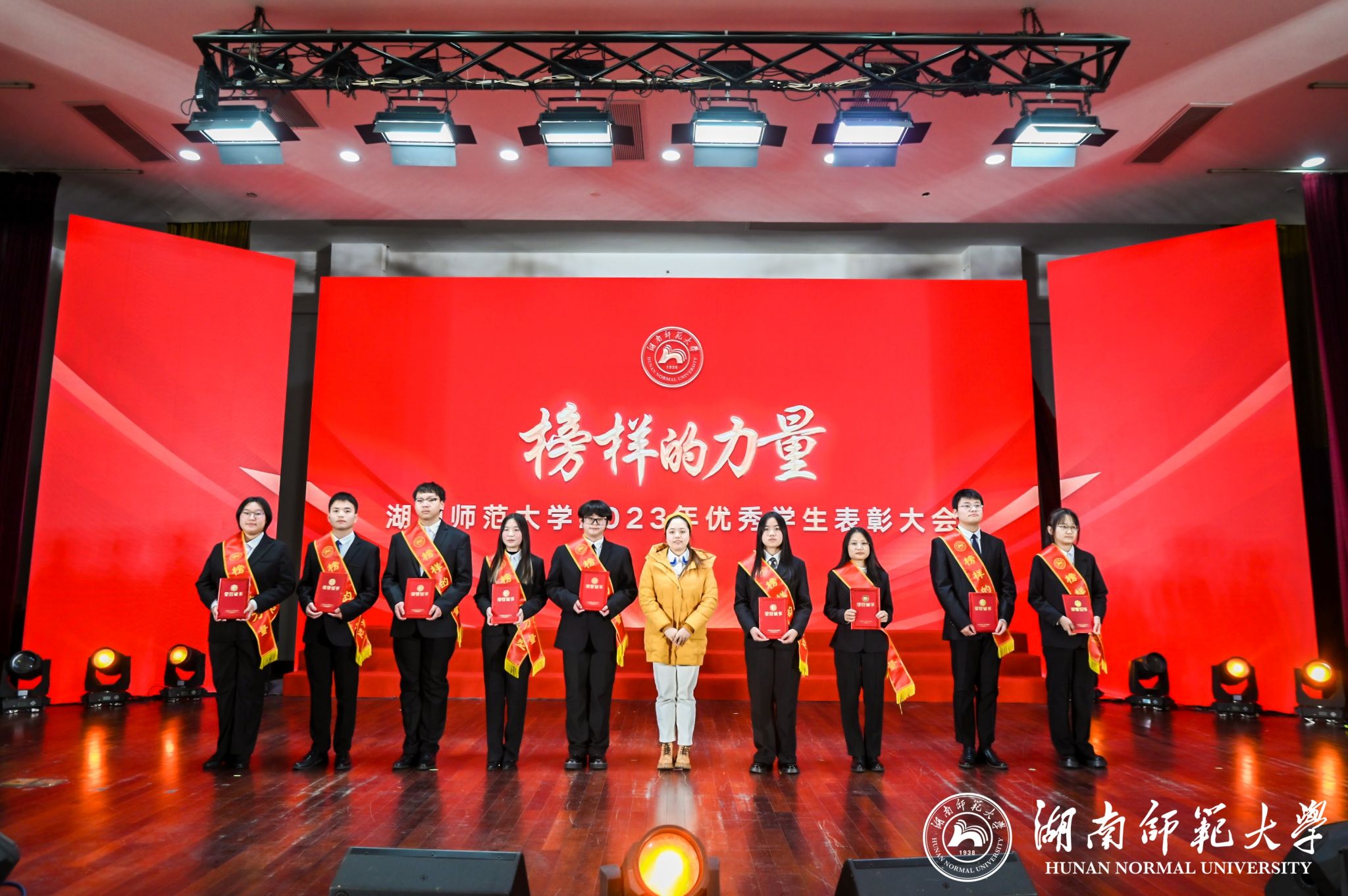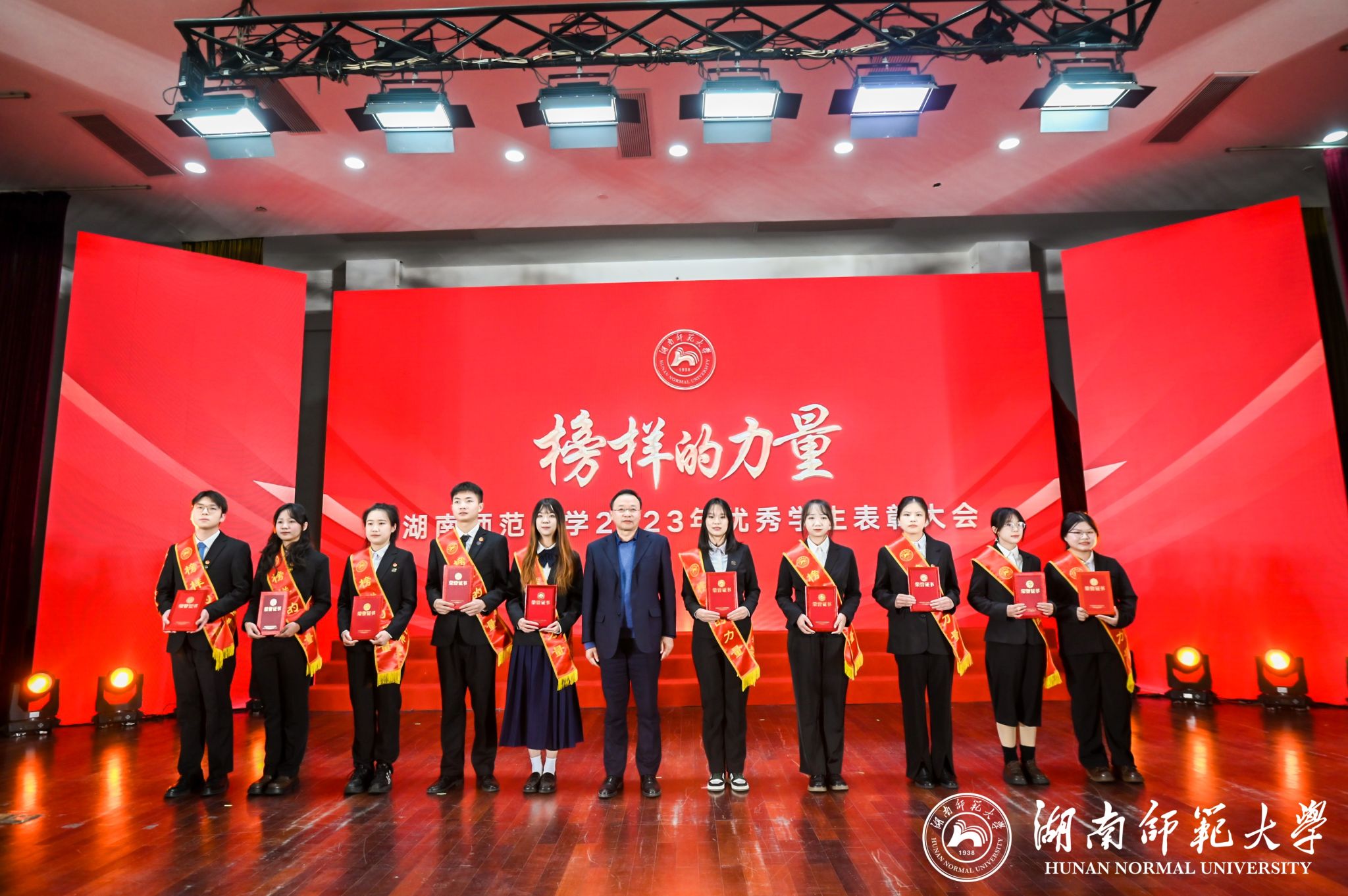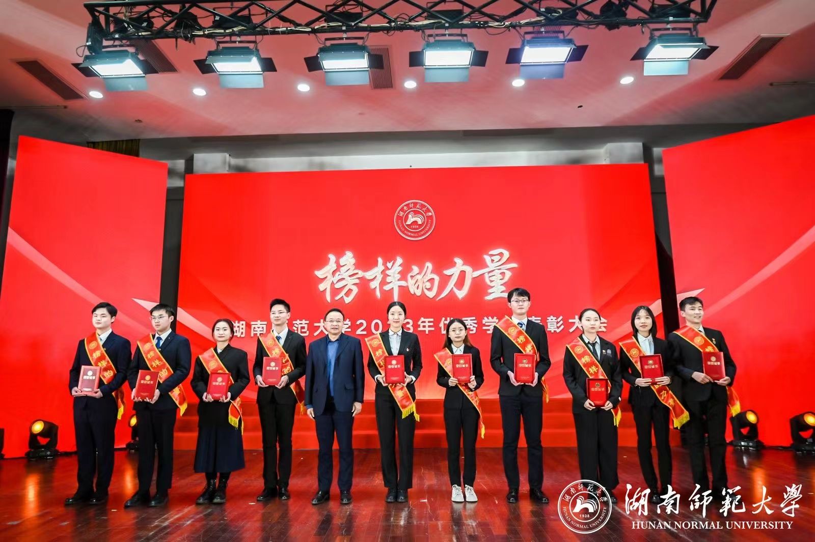 此次表彰大会共设立勤勉篇、严谨篇、求实篇、创新篇四个栏目。表彰大会获奖名单揭晓,公司多名学子在四个栏目中共获九个奖项。勤勉篇中,何亦诚、于舒文分别获2022-2023学年国家励志奖学金、beats365特等综合奖学金。严谨篇中,法律义工团队参与湖南省第六届“雷锋杯”青年志愿服务项目大赛,获评湖南省第17届“芙蓉学子·榜样力量”称号,队长王曾作为代表领奖;以邓亚转为队长的回访母校实践团队获评2023年度优秀学子回访母校活动十佳队伍称号。求实篇中,公司南院2栋203宿舍获评2023年度“保研寝室”称号,其中王静泱保研至吉林大学,严妍保研至中国政法大学,吕书纬保研至中南财经政法大学,于宜平保研至beats365;张雅婷获2023年国际刑事法院中文模拟法庭比赛全国一等奖,获评2023年度各类竞赛优秀个人称号;夏悦淇作为校教官队成员获评2023年度国防教育先进个人称号;杨其福获2023-2024学年“长沙银行新生奖学金”。创新篇中,于舒文获评2023年老员工创新创业训练计划项目国家级立项代表。