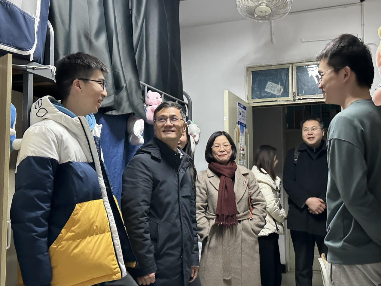 老师们与员工亲切沟通,详细回应了用餐等生活问题,勉励大家形成良好健康的作息规律,以积极饱满的精神状态投入到新学期的学习和生活中。在毕业生寝室,老师们鼓励同学们明确目标、脚踏实地,严格对照要求完成毕业论文,积极参加实习,沉着应对各种考试,早日达成理想,并表示公司将尽最大努力为大家提供各项指导和帮助。此外,老师们对宿舍的水电设备、周边环境等情况做了细致的检查,还对宿舍物品摆放、清洁等方面提出了建议,强调了住宿条件安全与整洁的重要性。