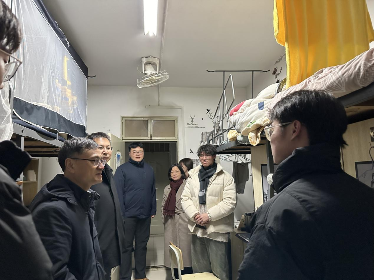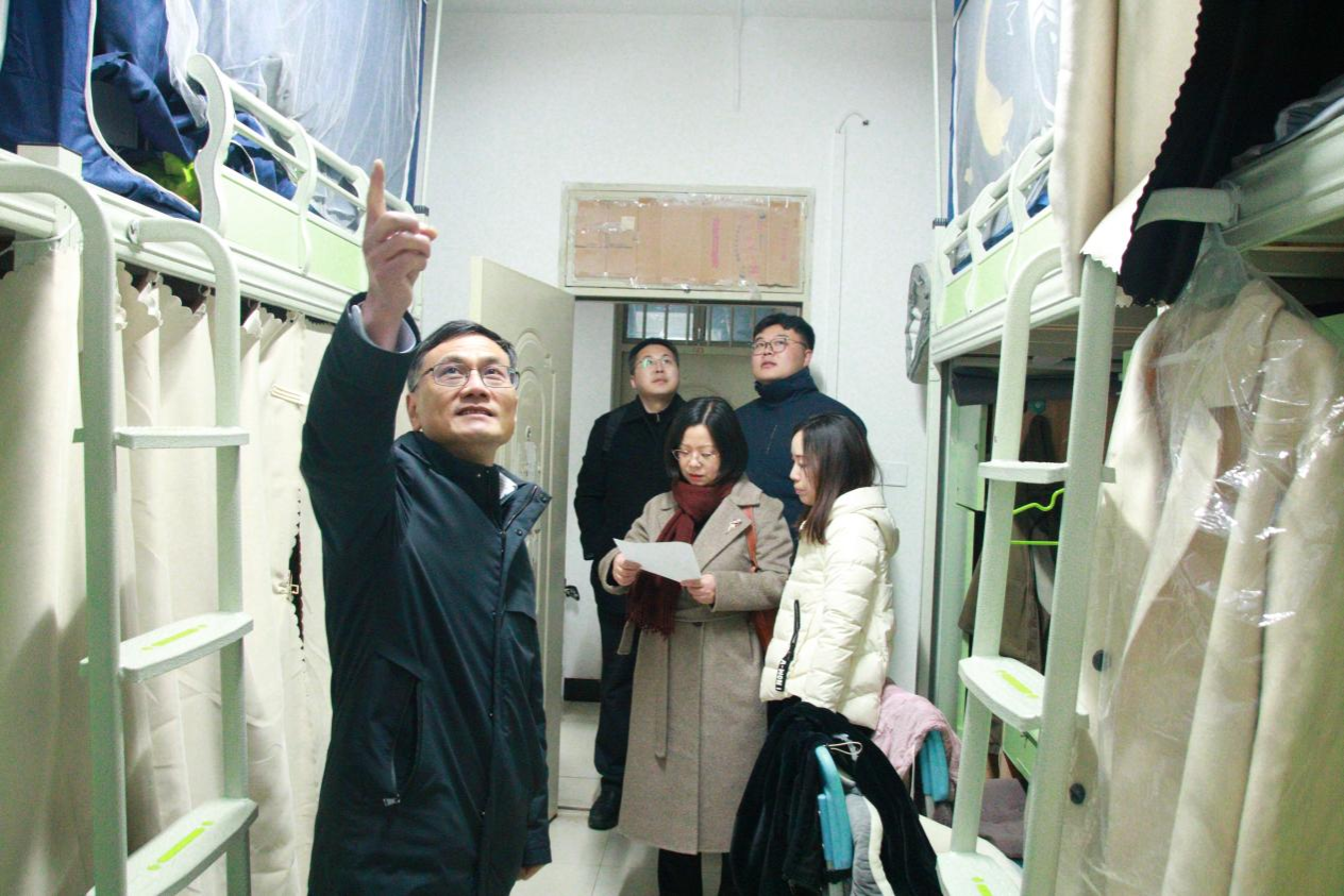 (通讯员 白欣睿 梁延喆 曹珩哲)2月26日晚,为了解新学期伊始员工的返校情况及状态,公司党委书记唐建文、党委副书记曹俊峰、副经理何燕华以及学工办全体辅导员赴各年级员工宿舍下寝看望各年级员工,并对各宿舍进行安全隐患排查。