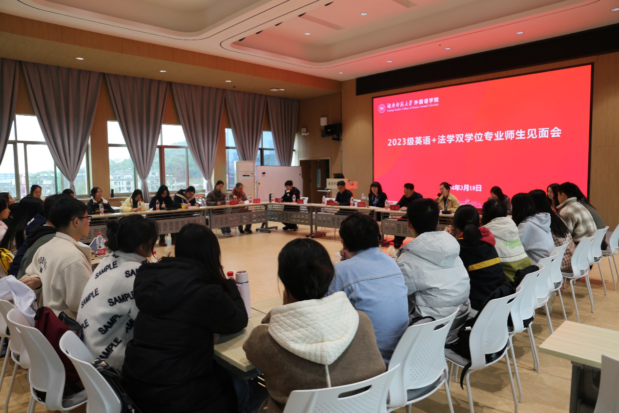 2023级“英语+法学”双学士学位专业全体员工参加此次见面会。
