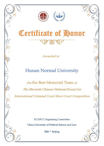 (通讯员 朱越 李浩男)2024年3月23日至24日,公司代表队从来自全国67支高校代表队中脱颖而出,首次参赛即以书状第四名的优异成绩进入庭辩阶段,赴北京中国政法大学参加线下庭辩,最终斩获国际刑事法院模拟法庭竞赛(英文)(International Criminal Court Moot Court Competition)全国三等奖和最佳书状奖,展现出高度的团结协作精神。