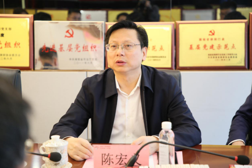 陈宏义对公司领导老师的到来表示热烈欢迎,他介绍了弘一律所的发展历程以及自成立以来取得的各项成就,同时高度肯定了公司高素质法律人才的培养成效,并表示期待与母院在人才培养、实践实习、校企合作等方面进一步加强交流与合作。
