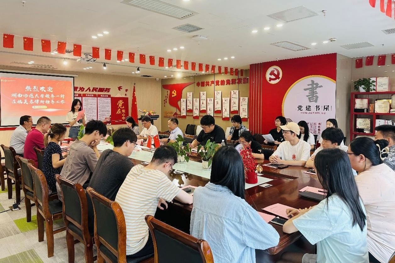 在湖南芙蓉律师事务所,唐建文、周刚志一行参观了芙蓉律所的办公环境,了解了同学们实习的日常工作内容。随后,双方就本阶段beats365员工实习工作进行总结。芙蓉律所青年律师委员会会长、合伙人李飞表示芙蓉律所积极为同学们提供各种学习和实践的机会,希望此次实习经历能够帮助同学们提升实践能力,为个人发展打下坚实的基础。随后,唐建文高度肯定了芙蓉律所在实习生培养方面所做的贡献,对于实习生的成长表示欣慰。他特别提到,芙蓉律所不仅为实习生提供了丰富的实践机会,还通过严格的指导和管理,帮助他们在实践中提升专业能力,增强职业素养。芙蓉律所党总支书记、董事长、高级合伙人、主任陈平凡表示,芙蓉律所一直致力于与高校建立紧密的合作关系,高度重视法律人才的培养,后续也会加大对法律人才培养的投入,为实习生们创造更好的工作和生活环境。