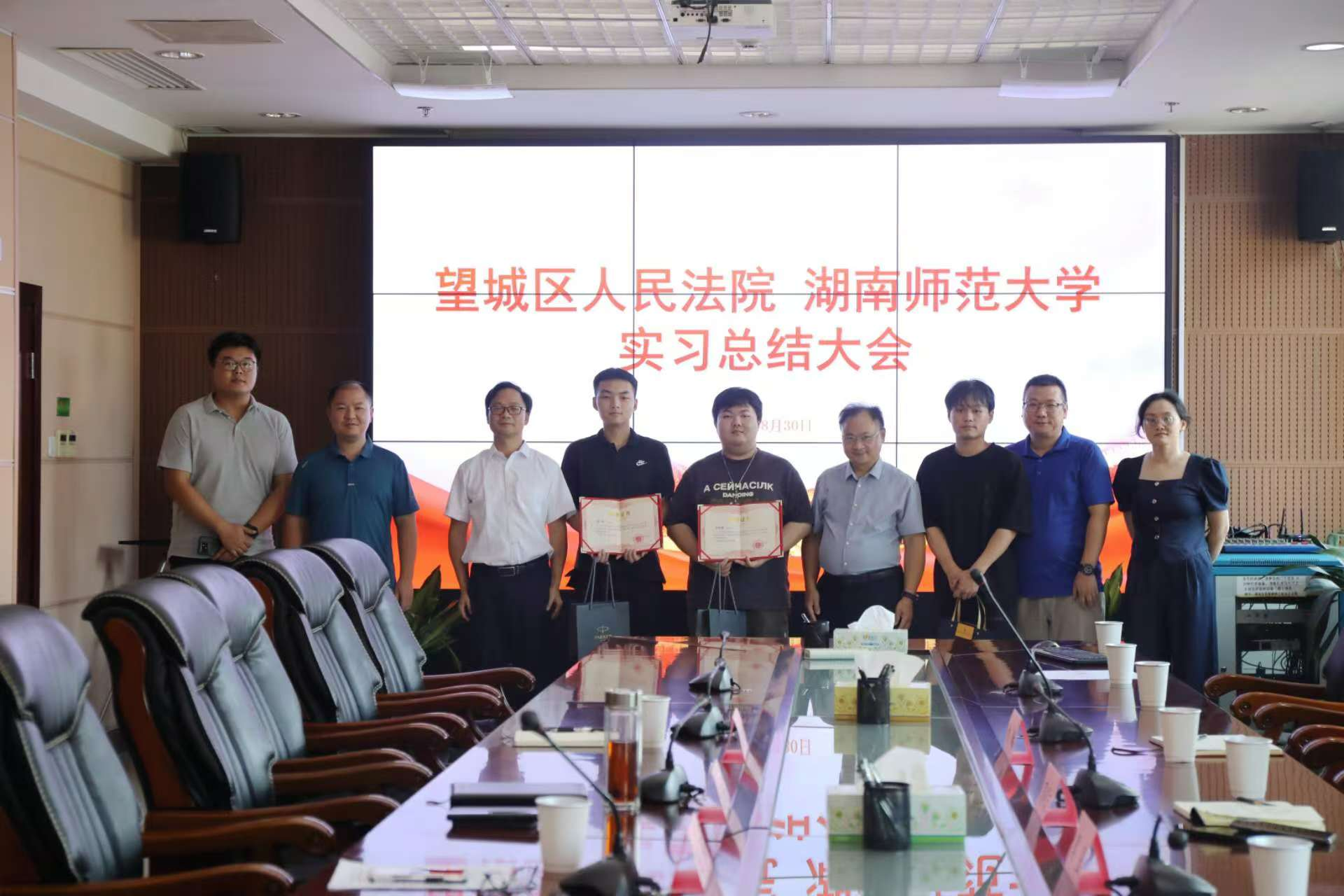 在望城区人民法院,政治部主任何鸣向副经理周刚志一行介绍了实习生的培养工作,并对此次实习生的表现表示肯定。望城区法院民事审判庭副庭长龙峰鼓励实习生在实习期间就工作内容凝练特色,并指导同学们撰写文章,以期在提升员工专业实践能力的同时,也帮助同学们提升理论总结能力。周刚志表达了对法院的感谢以及对实习生们的肯定。望城区人民法公司党组书记、经理龙兴盛作总结讲话,他表示法院也将继续优化实习生的工作环境和条件,为实习生提供更多的学习和实践机会,并相信在双方的共同努力下,能够培养出更多优秀的法律人才,为我国的法治建设贡献更大的力量。