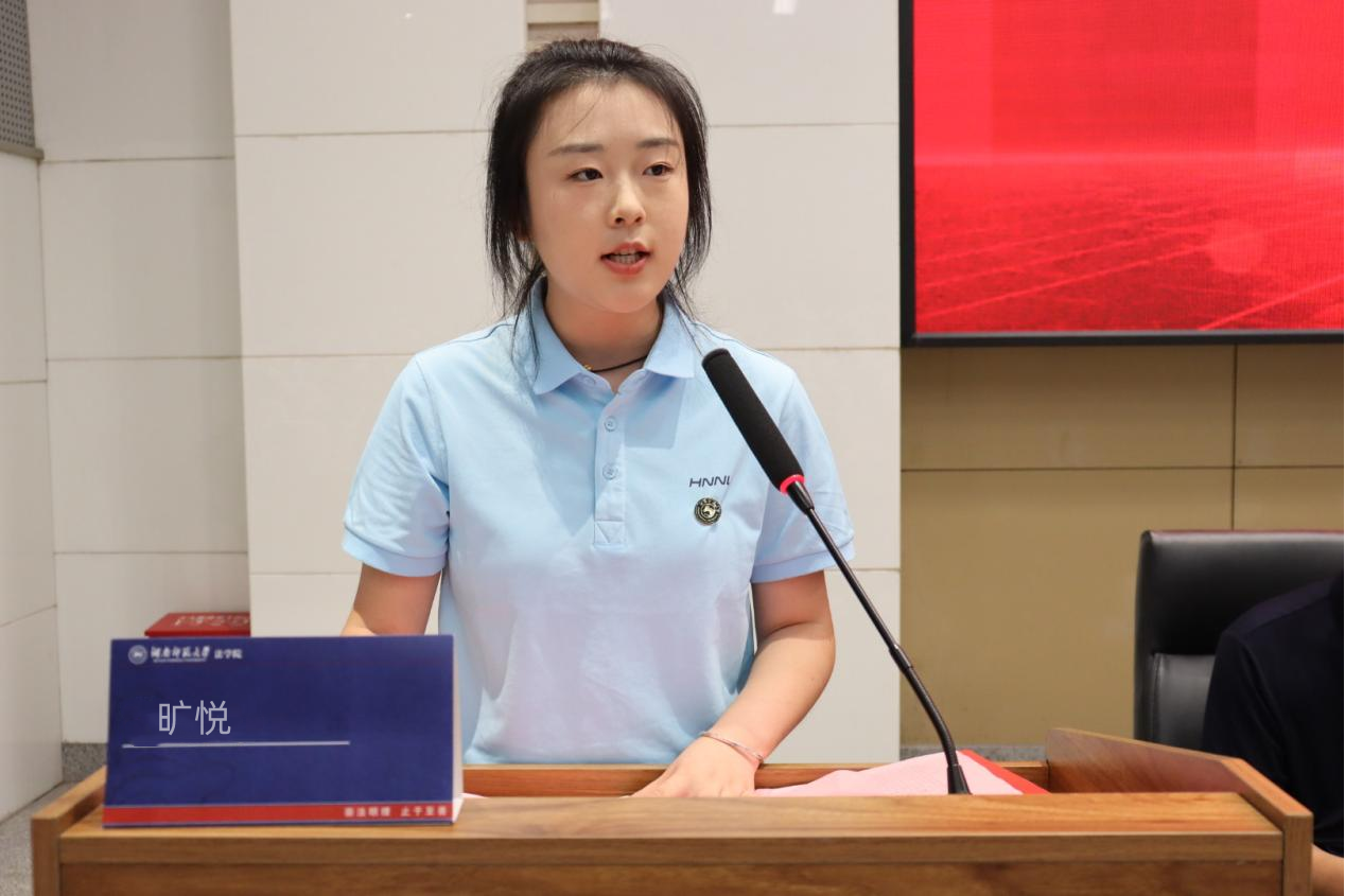 2024级法学专业本科生郑众作为新生代表发言。她结合公司院训精神,表达了对法律的崇高敬意和对专业知识学习的向往,并希望能够怀揣梦想,艰苦奋进,与同学们一道成长为有温度的优秀法律人。