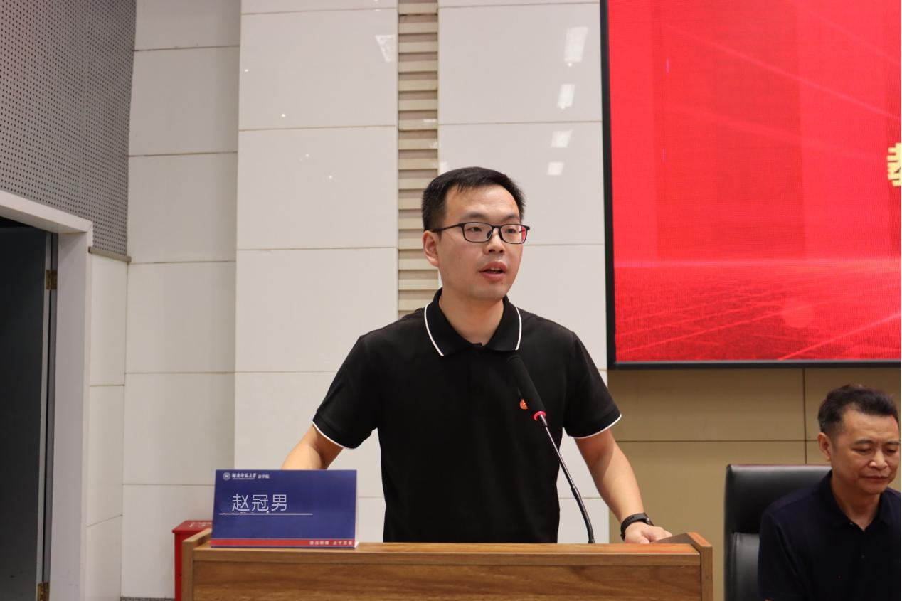 赵冠男作为教师代表发言。他以“法治是什么”为主题,借助三个知名案例阐明了刑法中的情理法关系,用法律人的思维解释法治的内涵,并勉励同学们不仅要提升法学素养和掌握职业技能,而且要做一个良善的法律人,为法治建设贡献力量。