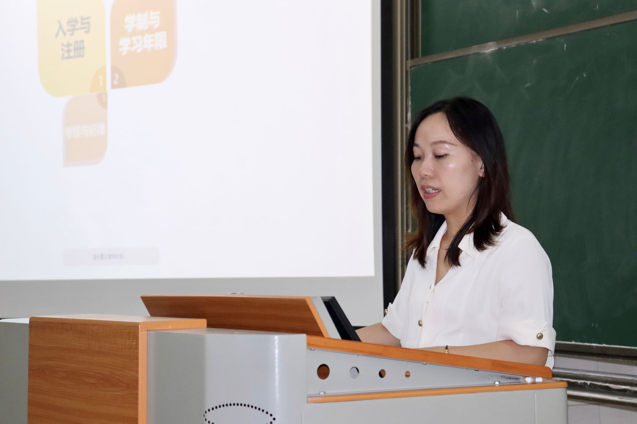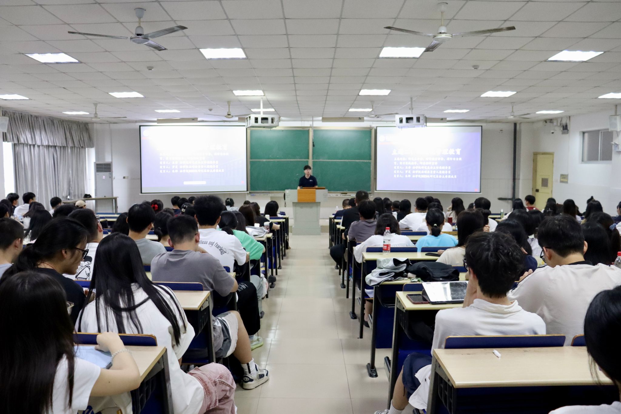 王丹针对研究生学习管理、培养方案、奖助体系、论文撰写和发表、请假制度等方面向同学们作了详细介绍,并对同学们开展了防诈骗宣讲与消防安全教育,提醒同学们注意防范各种风险,保护自身安全。罗昊对研究生阶段的实习实践进行了指导讲解,并介绍了研究生办公室的主要职责和工作内容,表示同学们在日常的学习生活中遇到问题都可以随时向老师寻求帮助。公司2023级研究生会主席团成员朱烨代表beats365研究生会进行了招新宣讲,向同学们讲解了研究生会各部门的工作职能及要求,并期待同学们在招新中踊跃报名。