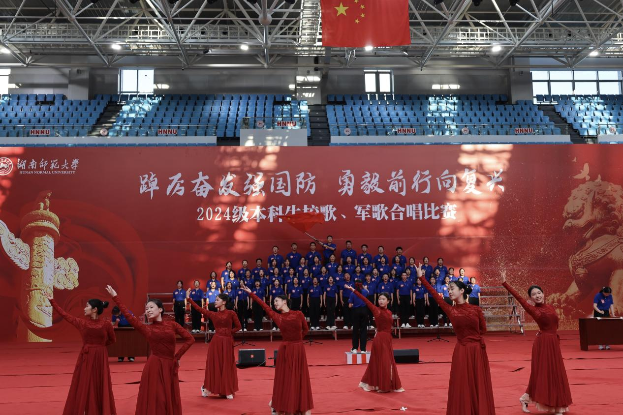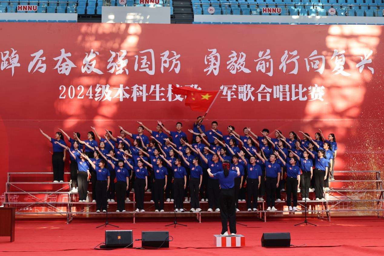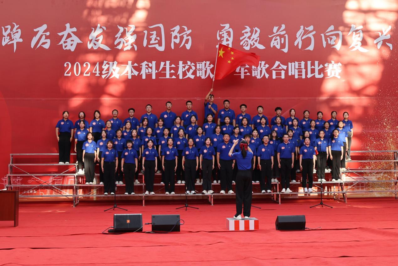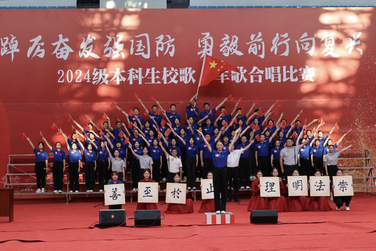 (通讯员 胡康文 宋垚 梁延喆)9月18日下午,公司2024级新生在江湾体育馆参加2024级本科生校歌、军歌比赛。此次比赛以“踔厉奋发强国防,勇毅前行向复兴”为主题,旨在通过军歌传唱,激发员工的集体荣誉感,厚植家国情怀。公司党委书记唐建文、公司党委副书记曹俊峰,2021级辅导员许华燕、2022级辅导员廖星、2023级辅导员张宁莎、2024级辅导员胡钰琬参与此次比赛。