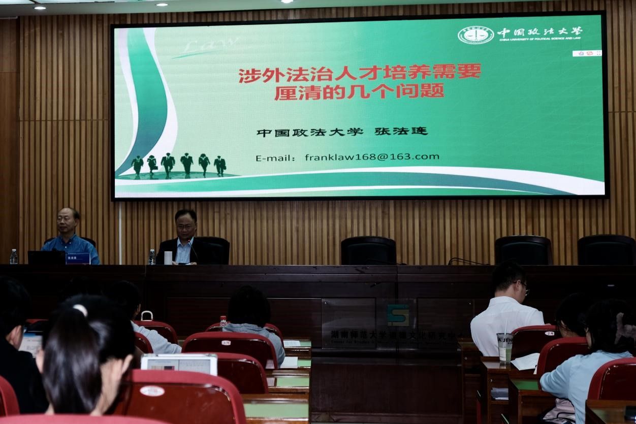 张法连首先从时代背景出发,指出当前一切政治问题都可以转变为法律问题,并被纳入司法裁判的范围,这是国际法治的基本要求。并从两次中央政治局集体学习中总结出目前中国不仅要讲好中国故事,更要讲好中国法治故事。同时,也强调当前传统法学、外语专业的瓶颈问题,市场倒逼法学、外语公司创新改革。