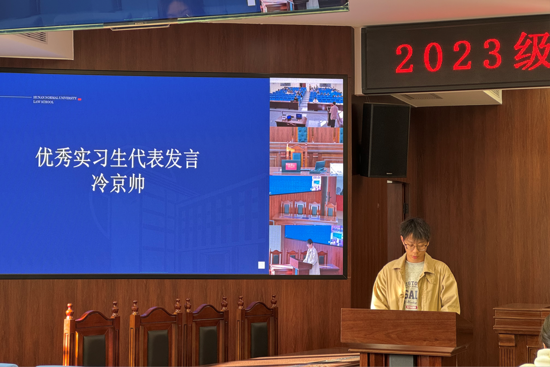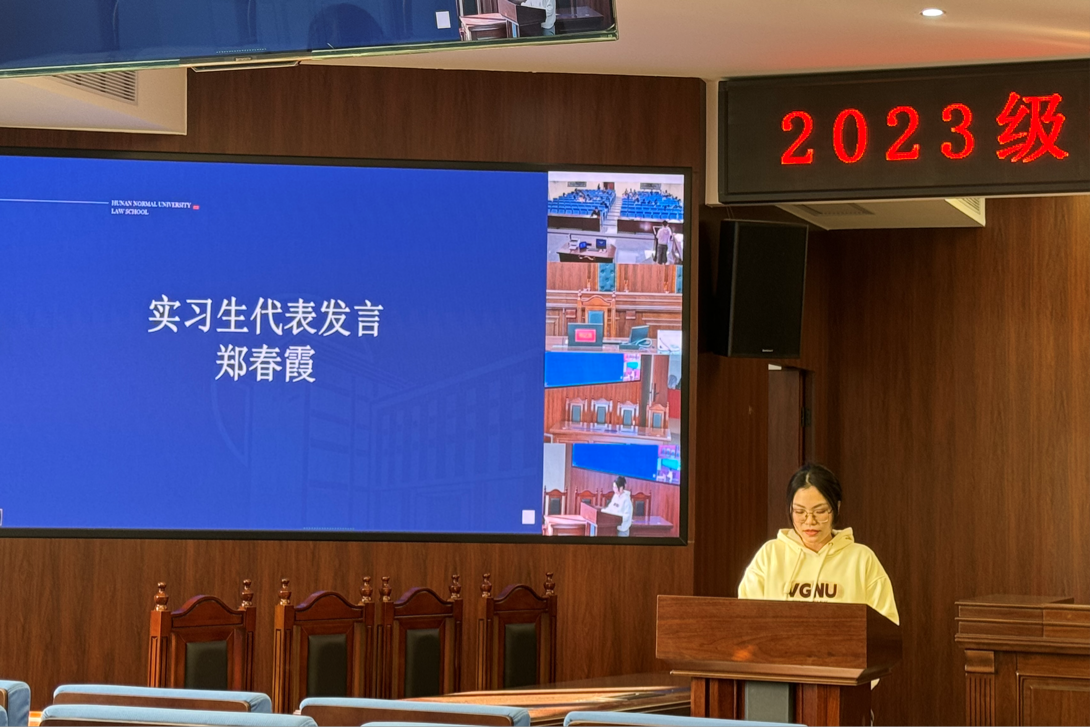 会上,2022级优秀实习生代表冷京帅首先从学术论文写作与实习两方面向学弟学妹们分享了个人经验。随后,2023级实习生代表郑春霞号召同学们在实习过程中勇于突破自我,认真学习。最后,欧福永表示实习的意义在于将理论知识运用到实践中去,检验自身的知识储备能力,利用实习机会发现自己的未来职业方向。他鼓励同学们在实习过程中虚心向前辈请教,主动承担工作,锻炼并学习多种实习技能,为未来工作打下坚实的基础。