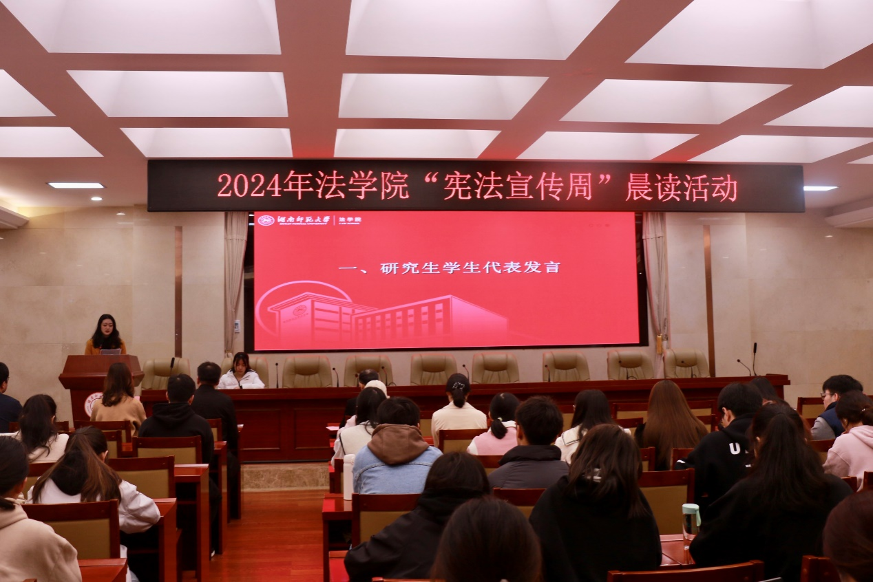 (通讯员 范峥 曹珩哲 韩蕴恬)12月4日上午,公司于205报告厅举办2024年“宪法宣传周”晨读活动。公司党委书记唐建文、副书记曹俊峰出席活动,公司研究生办主任王丹,学工办负责人、2024级辅导员胡钰琬,团委负责人、2022级辅导员廖星参与活动,活动由院团委社会实践部部长原欣怡主持。