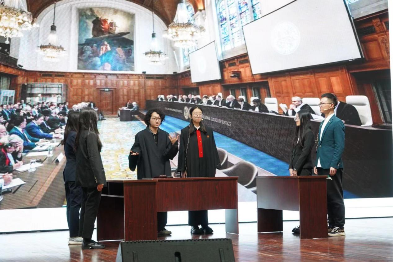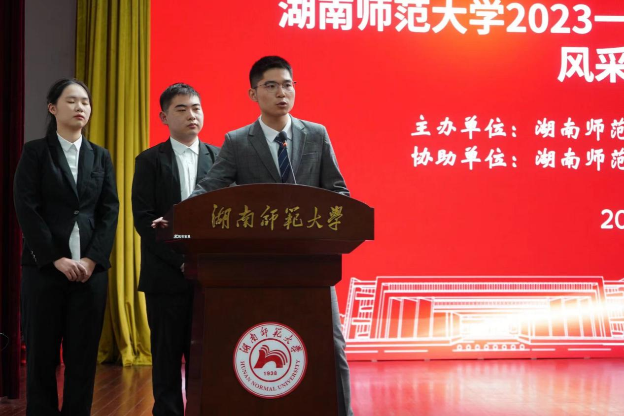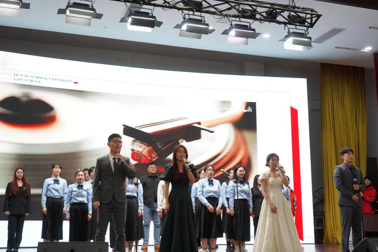 此次评选答辩会分为班级风采展、现场答辩两个环节。在班级风采展环节,讲解人王艺霖从党支部建设、学风建设、社会实践等方面汇报了班级发展情况,并强调班级始终秉承“卓越、创新、团结、奉献”的班级精神,锐意进取,奋楫笃行。在激情流畅的讲解中,各位展演人通过生动形象的表演进一步展现了班级专业特色与独特魅力。在学风建设方面,唐正宇、孙沁馨等同学精彩再现了班级学子在ICJ模拟法庭竞赛中的卓越表现。在社会实践方面,邹磊、于硕、黄杰等同学结合社会热点,展示了班级学子在民政局进行普法宣传教育、帮助市民深入理解离婚冷静期政策的实践活动。最后,廖星、张宁莎与班级全体同学合唱《冲动》,充分体现了班级同学的青春活力和对梦想的执着追求。