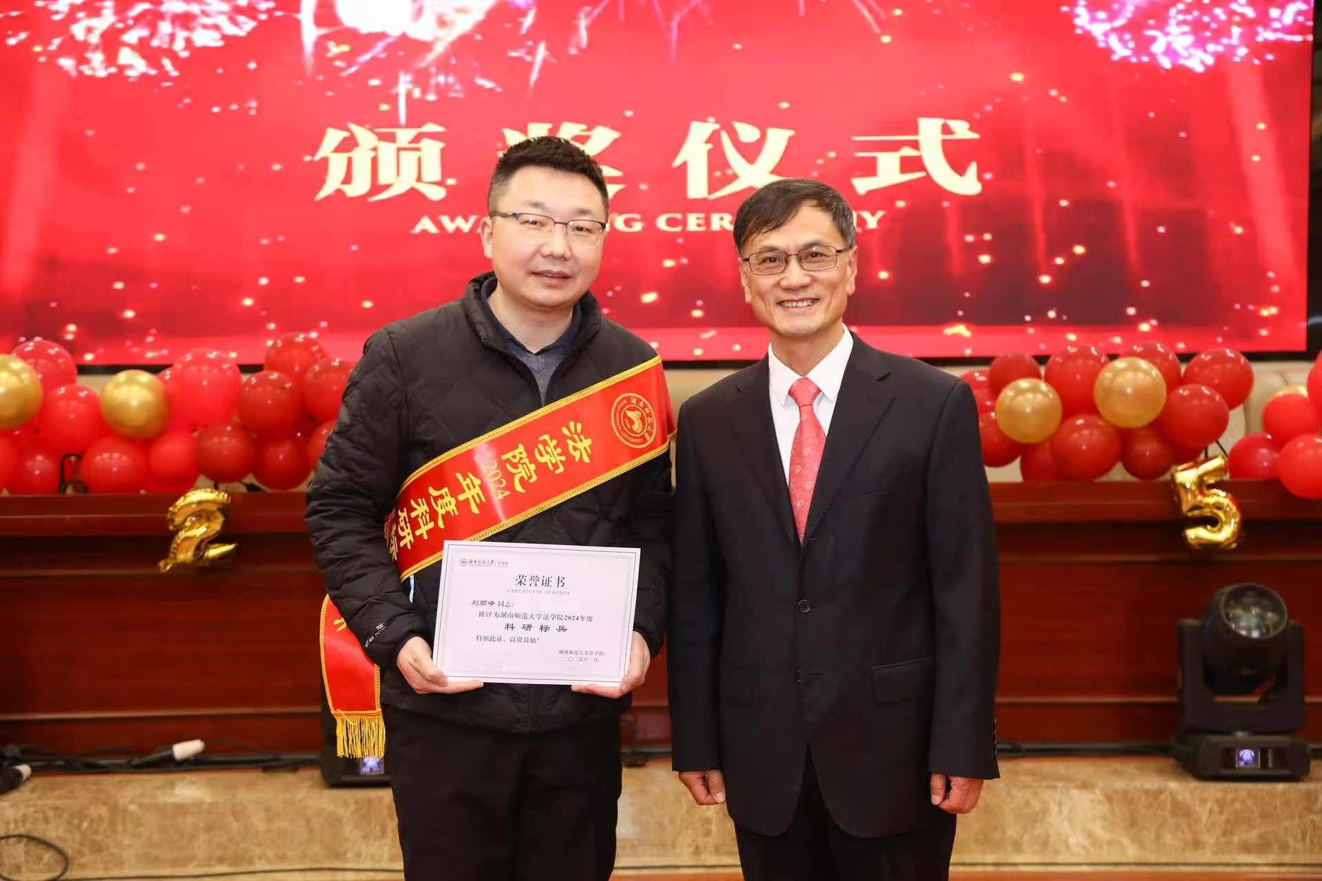 接着,大会宣读了2024年度表彰决定,并举行了隆重的颁奖仪式。教学科研标兵代表刘顺峰、后勤先进工作者代表张小军先后发言,分享了过去一年的收获与感悟,表达了对公司发展的美好祝愿。