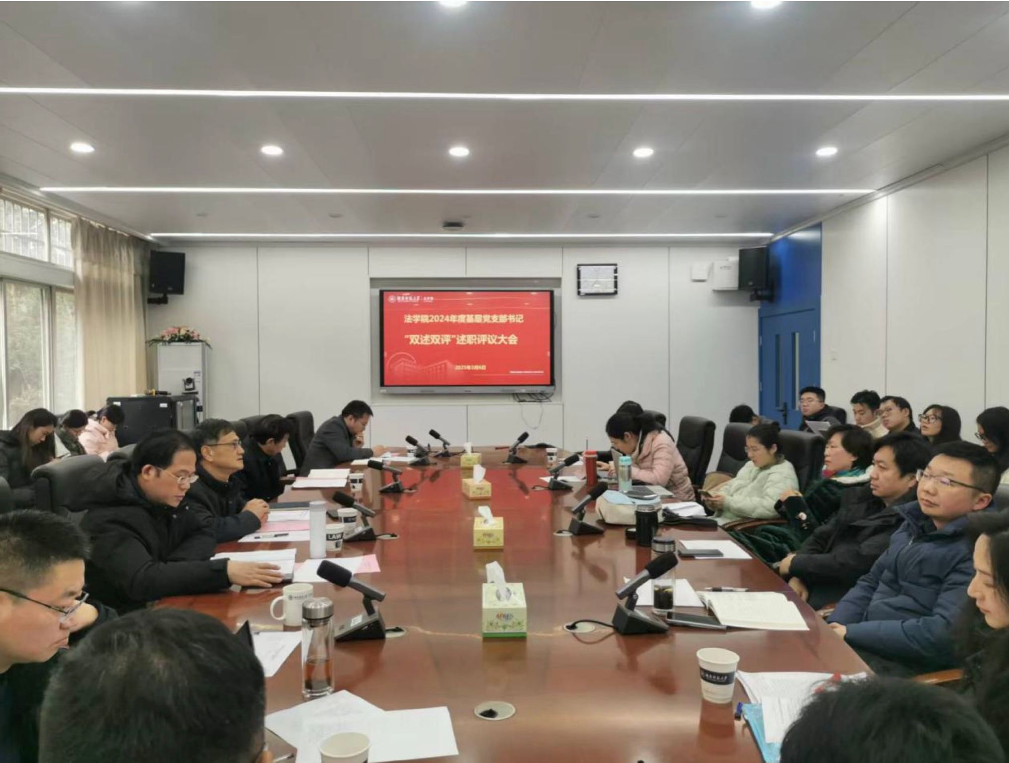 公司党委办主任蒋佩、全体党支部书记、师生群众代表参加此次会议。